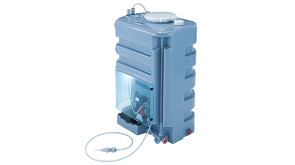• Sodium hypochlorite feeding unit with integrated electromagnetic metering pump and chemical tank.