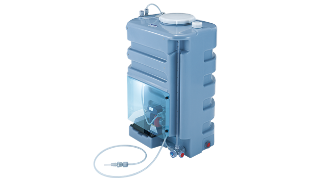 • Chemical tank is made from PE having excellent chemical and impact resistance (equipped with anti-splash cover)